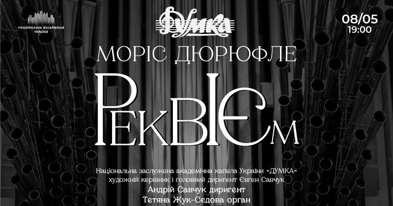 До дня памʼяті і примирення у виконанні «ДУМКИ» прозвучить Реквієм Дюрюфле — на вшанування жертв Другої світової. Сам композитор узявся писати цей твір у 1941 році на замовлення пронацистського уряду Віші. Так Дюрюфле міг забезпечити своє існування у непростих умовах окупації. Втім мети прислужуватися колаборантам митець не мав: Реквієм присвячено памʼяті його батька. До того ж вимогливий до себе композитор завершив його аж у 1947 році, коли нацизм було подолано. Зрештою, сама музика — щира, світла і піднесена говорить сама за себе.