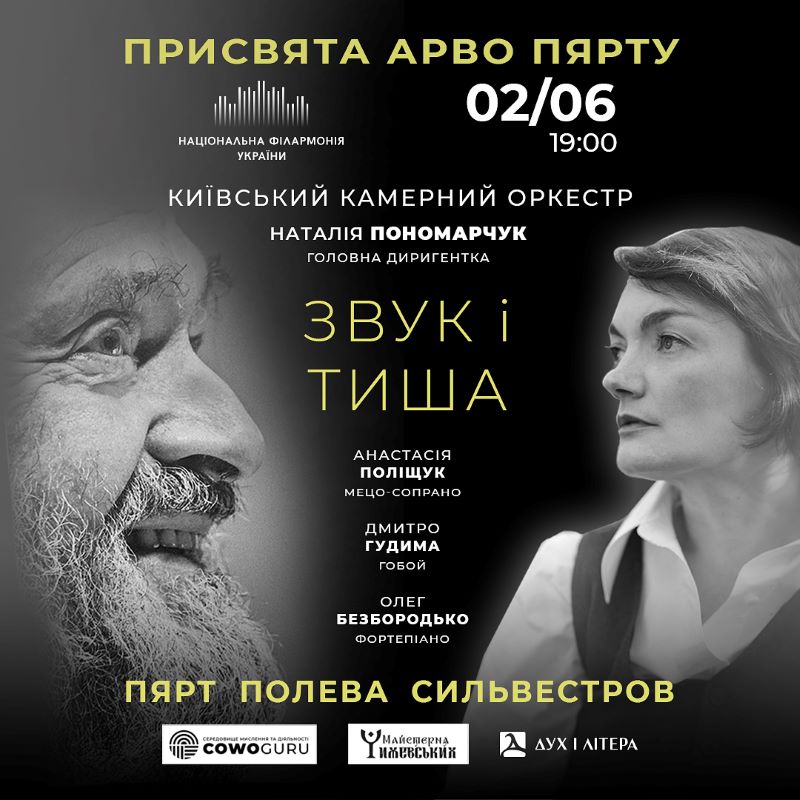2 червня нова програма Київського камерного оркестру під орудою маестро Наталії Пономарчук «Звук і Тиша», присвячена всесвітньовідомому композитору Арво Пярту, – увібрала в себе музику вслуховування, чистоти і світла.